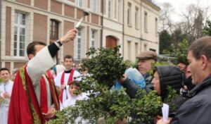 « Dans la foule, la plupart étendirent leurs manteaux sur le chemin ; d’autres coupaient des branches aux arbres et en jonchaient la route. Les foules qui marchaient devant Jésus et celles qui suivaient criaient : ’’Hosanna au fils de David ! Béni soit celui qui vient au nom du Seigneur ! Hosanna au plus haut des cieux !’’ » (Extrait de la lecture de la procession des Rameaux ; Mt 21,1-11)
