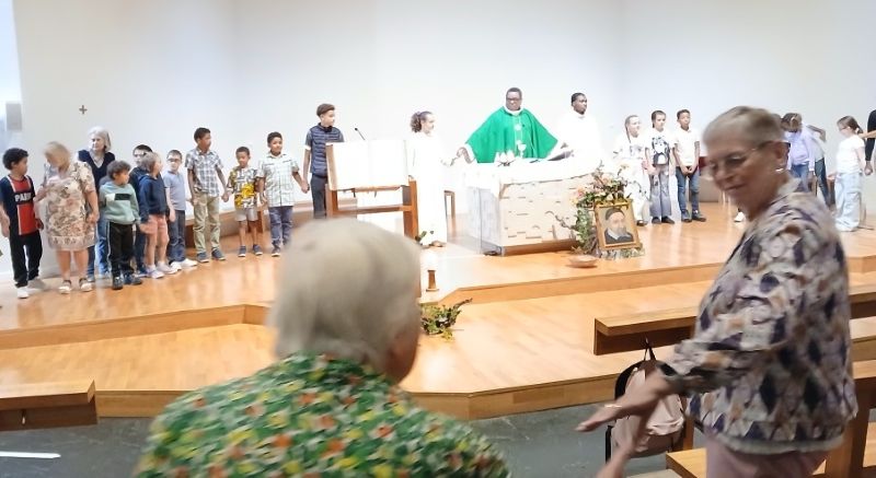 La célébration a rassemblé toutes les générations. Et les enfants, que le P. Robert a bénis avec leurs cartables, « ne sont pas l’avenir, mais bien, conjointement avec leurs catéchistes, parents et grands-parents, le présent d’une communauté ecclésiale vivante et rayonnante. »