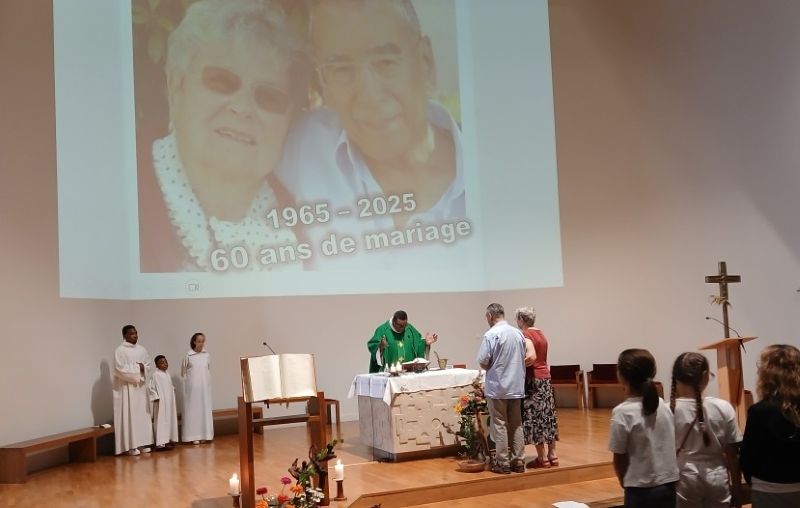 Les paroissiens ont été invités à se réjouir et à remercier le Seigneur pour les noces de diamant de Marie-Thérèse et Antoine en priant aussi pour tous les couples qui traversent des épreuves.