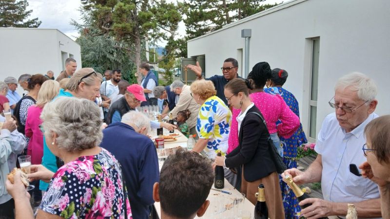 Enfin, à l’issue de la célébration, avant la pluie, les paroissiens ont pu partager le verre de l’amitié, avec du crémant offert par les époux jubilaires.